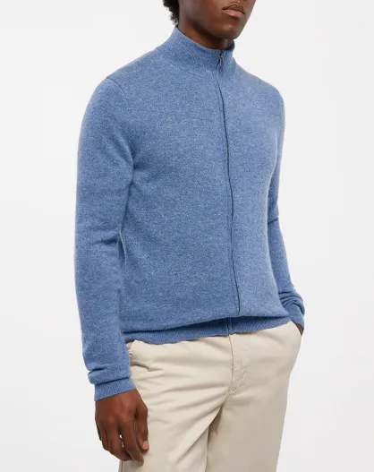 Gilet 100% Cachemire Zip Uni Nachgil bleu chiné