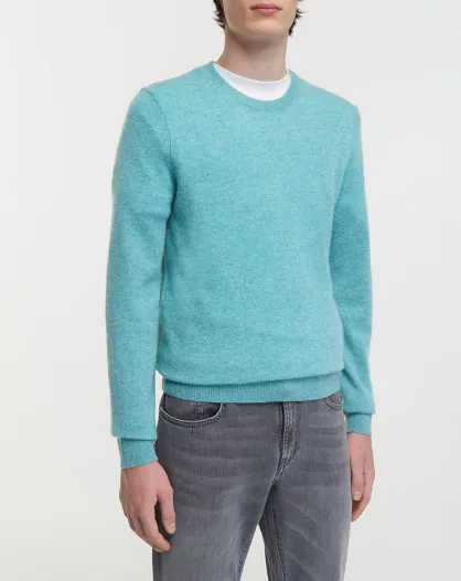 Pull 100% Cachemire col Rdc Uni Nachron bleu