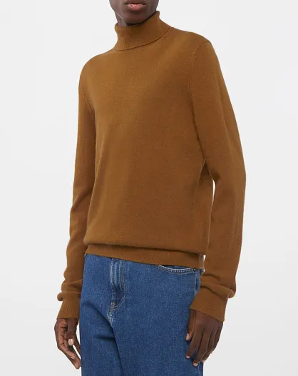 Pull 100% Cachemire col Roulé Uni Nachrol camel/gold