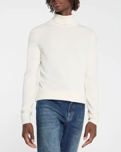 Pull 100% Cachemire col Roulé Uni Nachrol écru