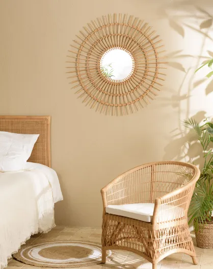 Miroir rond modèle soleil en rotin kally miel - D.100 cm