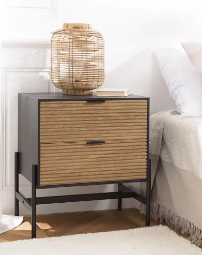 Chevet pin pieds métal charlie noir/bois - 54x40x59 cm
