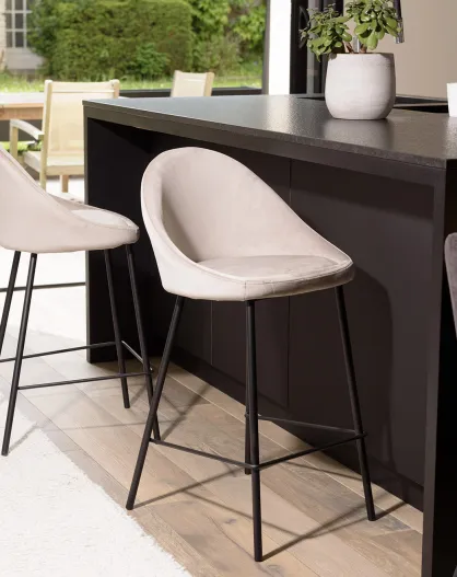 2 tabourets d'ilot velours tom taupe - 48x51x90 cm