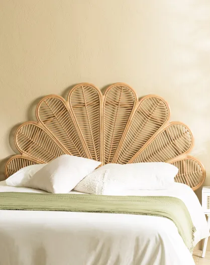 Tête de lit demi-lune fleur rotin kally miel - 180x6x146 cm