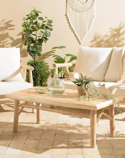 Table basse MADURA en branches de teck naturel - 120x63x46 cm