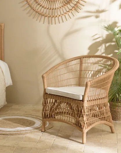 Fauteuil en rotin avec coussin d'assise kally miel - 73x67x81 cm