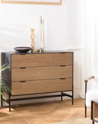 Commode pin pieds métal charlie noir/bois - 103.5x40.5x81.5 cm