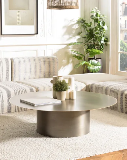 Table basse ronde en fer James noir/doré - 120x120x35 cm