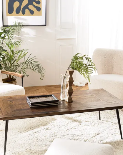 Table basse rectangle formes géométriques Kiara marron - 135x70x40 cm