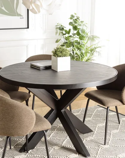 Table à manger plateau effet pierre basile noire - 120x120x76 cm