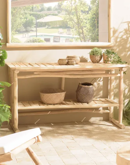 Console double plateau en branches de teck will naturel - 156x55x84 cm