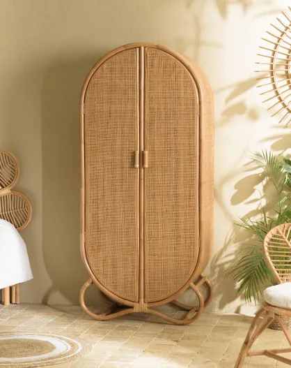 Armoire en rotin 2 portes en cannage kally miel - 83x48x183 cm