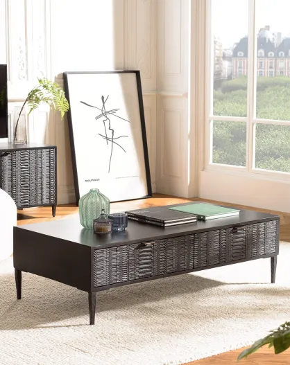 Table basse en manguier sculptés Gloria noire - 120x60x36 cm