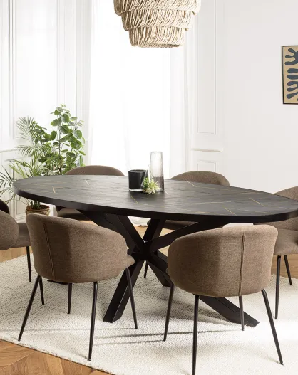 Table à manger effet pierre basile noir/doré - 220x110x76 cm