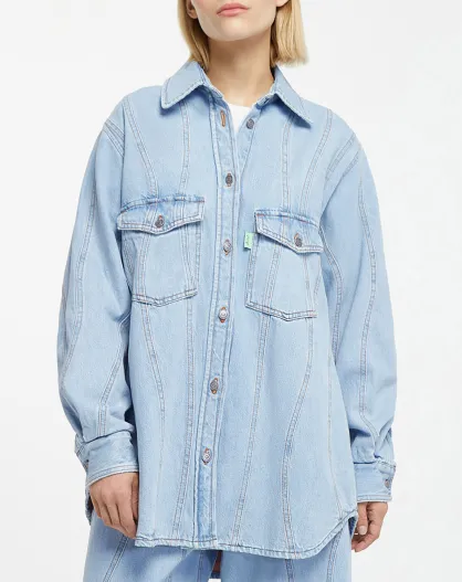 Surchemise en Coton Bio Octavia Wave Blue Sea bleu jean clair