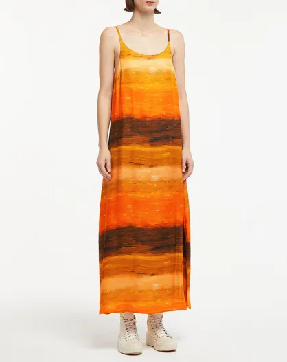 Robe 100% Soie Leva orange/marron