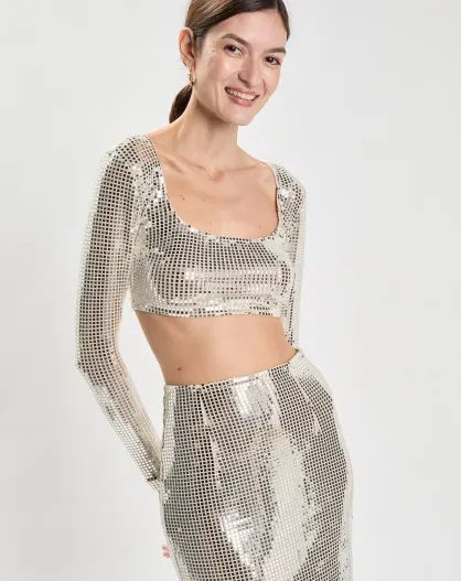 Top Strass Sirena argenté