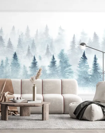 Fresque Winter Forest Bleu Neige - 150x305 cm