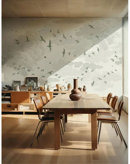 Fresque Les Oiseaux vert de gris - 150x305 cm