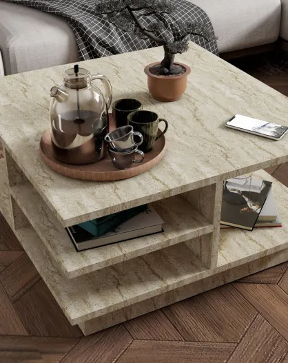 Table basse Prizma marbré - 90x35x90 cm