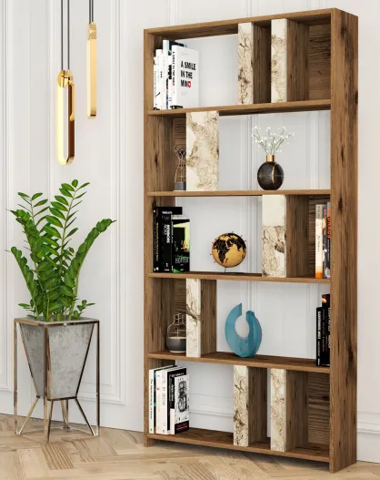 Bibliothèque Lima noyer/blanc - 90x180x20 cm