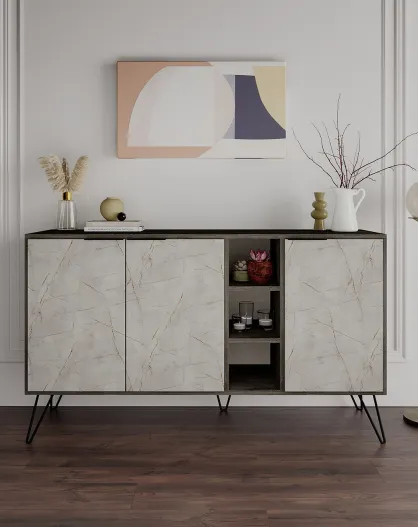 Buffet Kiev noyer/marbre noir - 160x78x35 cm