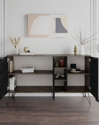 Buffet Kiev noyer/marbre noir - 160x78x35 cm