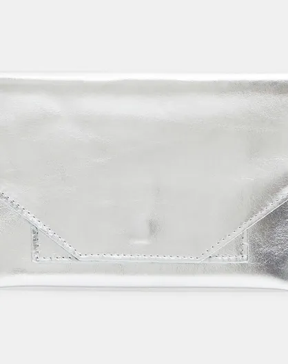 Pochette en Cuir Fred Mif argentée - 11x17x1 cm