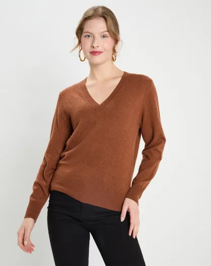 Pull Col V Zocon marron moyen