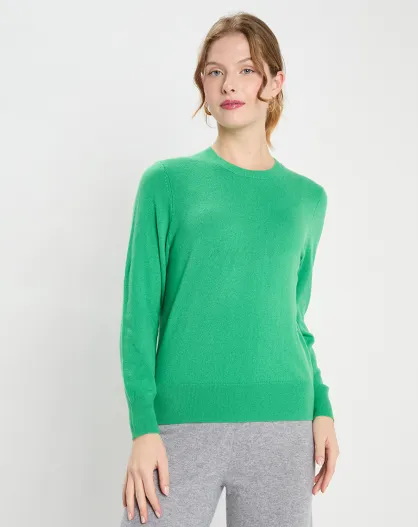 Pull 100% Cachemire col rond Zabri vert emeraude