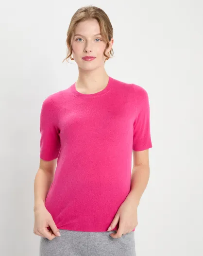 Pull 100% Cachemire manches courtes Difi rose fushia