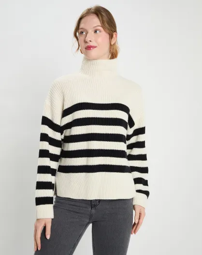 Pull en Laine & Cachemire Sydney rayure écru/noir