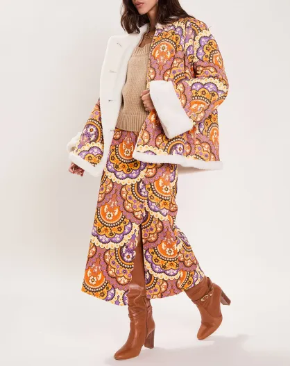 Jupe en Velours côtelé Fall imprimée violet/multicolore
