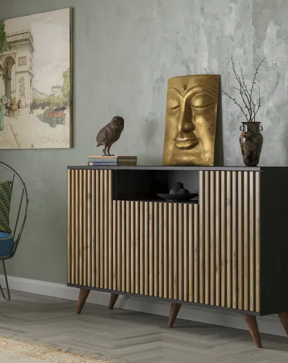 Buffet FRN bois/noir/pin - 140x91x35 cm