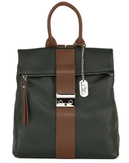 Sac à dos en Cuir Azalea vert/cognac - 30x31x11 cm