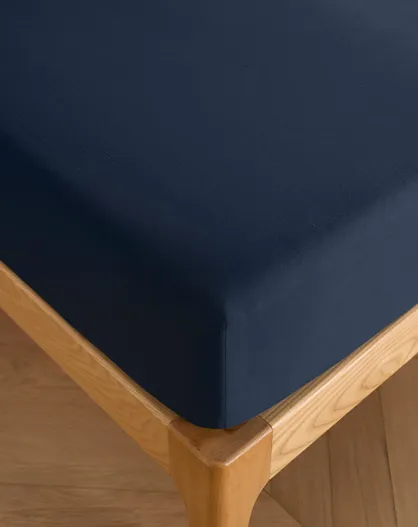 Drap housse 100% Coton bonnet 30 cm bleu nuit