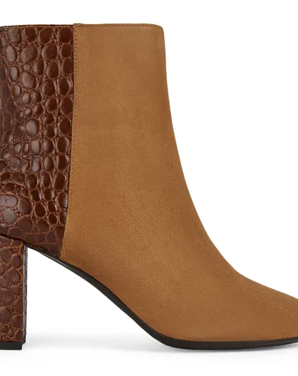 Bottines en Cuir & Velours de Cuir Pheby 80 cognac - Talon 8 cm