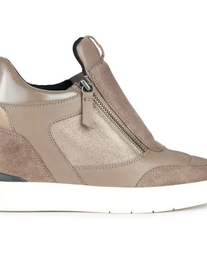 Baskets en Velours de Cuir Maurica taupe foncé - Talon 8 cm