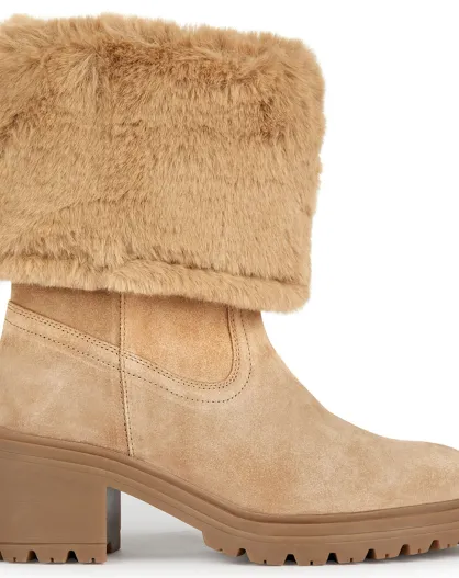Boots en Velours de Cuir Damiana toffee/beige - Talon 6.5 cm
