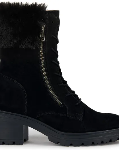 Boots en Velours de Cuir Damiana noires - Talon 6.5 cm