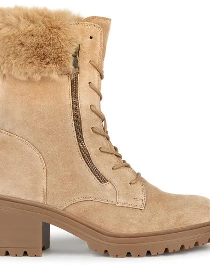 Boots en Velours de Cuir Damiana toffee/beige - Talon 6.5 cm