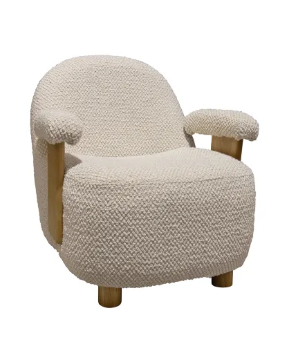 Fauteuil en Bouclette Structure en Bois Ulysse beige/naturel - 72x75x73.5cm