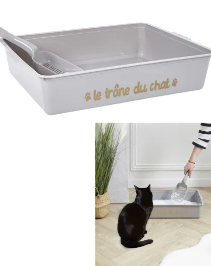 Bac à litière avec pelle gris - 42x31.5x9 cm