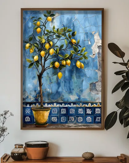 Tableau décoratif citronnier multicolore - 50x70x3.5 cm