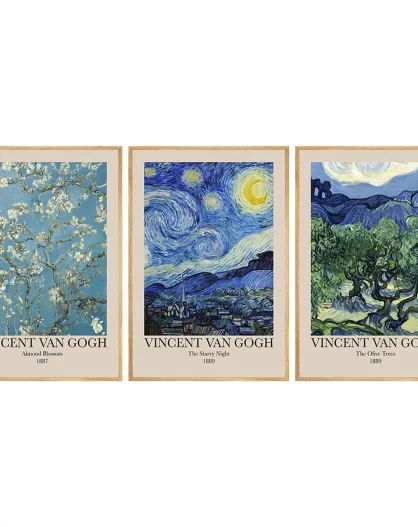 Tableau décoratif 3 pièces inspiration Van Gogh multicolore - 50x70 cm