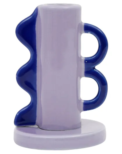 Bougeoir en Grès Funny parme/bleu - D.7x11 cm