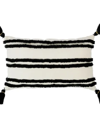 Housse de coussin brodee Ligne blanc/noir - 50x30 cm