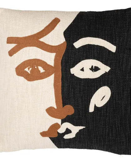 Housse de coussin brodée Maderia ecru/noir - 45x45 cm