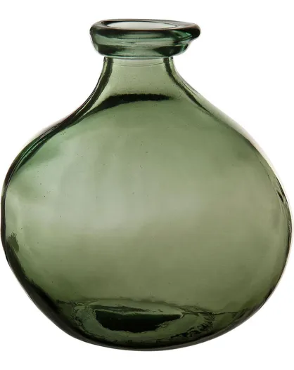 Vase en verre soufflé à la bouche vert foncé - 19x19x23 cm