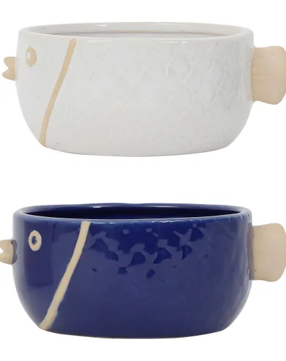 2 Coupelles Océan blanc/indigo - 14.5x12x6 cm